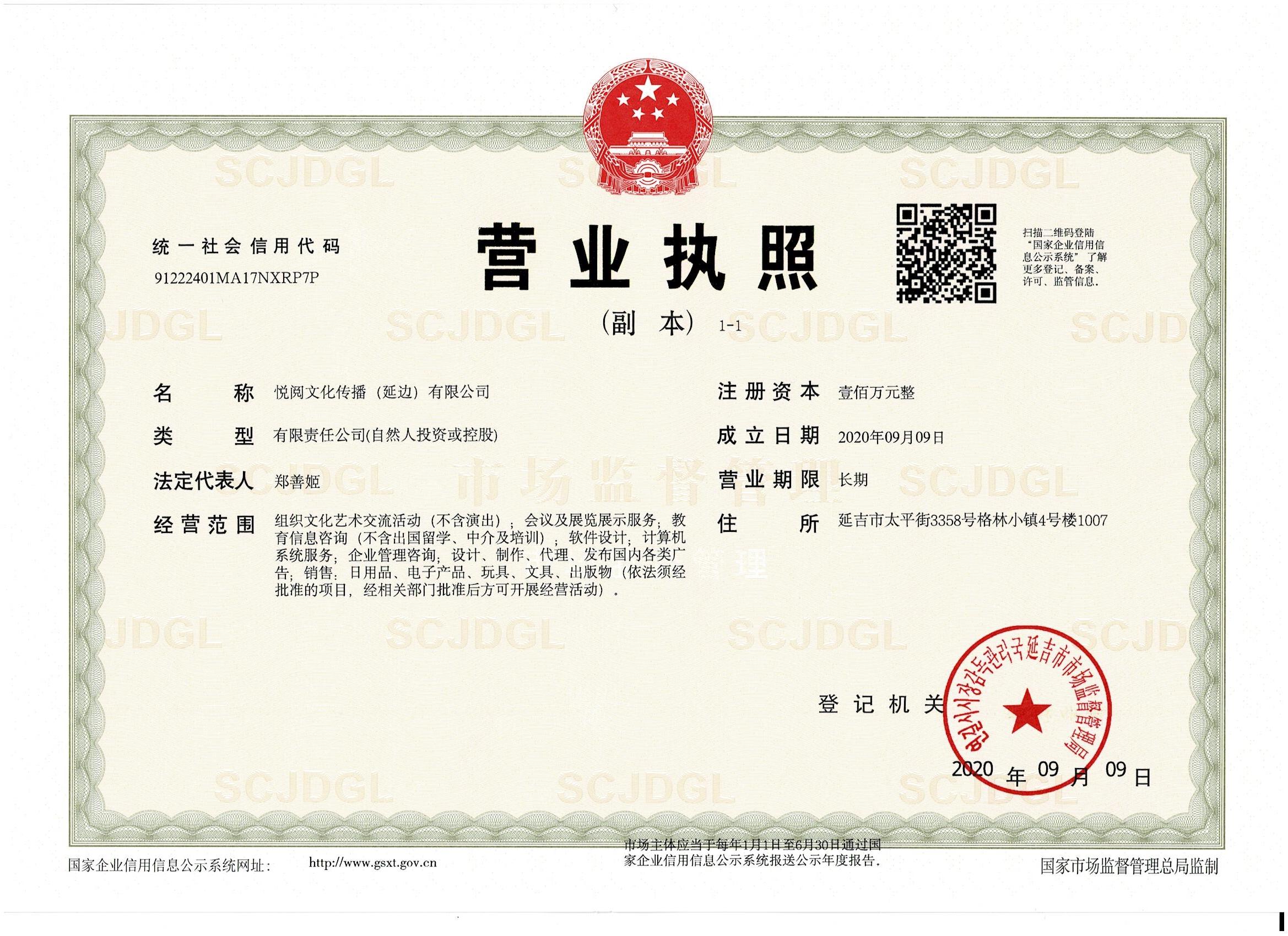 悅閱文化傳播(延邊)有限公司(以下簡稱“悅閱文化”)是北京悅閱文化傳播有限公司,成立于2012年的一家專門致力于兒童教育類項目加盟事業的公司。公司總部坐落于首都北京,注冊資金1000萬人民幣。我們力爭做國內兒童教育領域里最有創意,最科學的兒童教育加盟公司。我們從韓國、日本、英國、美國等知名公司引進最成功的項目,造福于中國的孩子,因為中國的騰飛在孩子身上,而孩子的騰飛關鍵在于正確有效的教育!